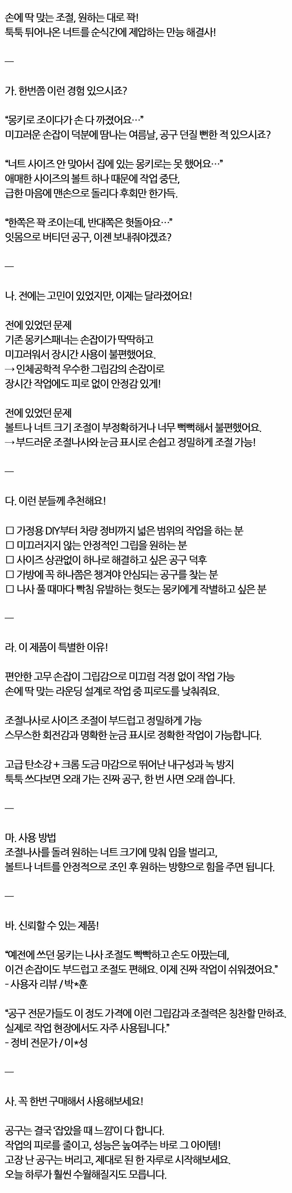 툭툭 튀어나온 너트를 순식간에 제압 고급몽키 200mm