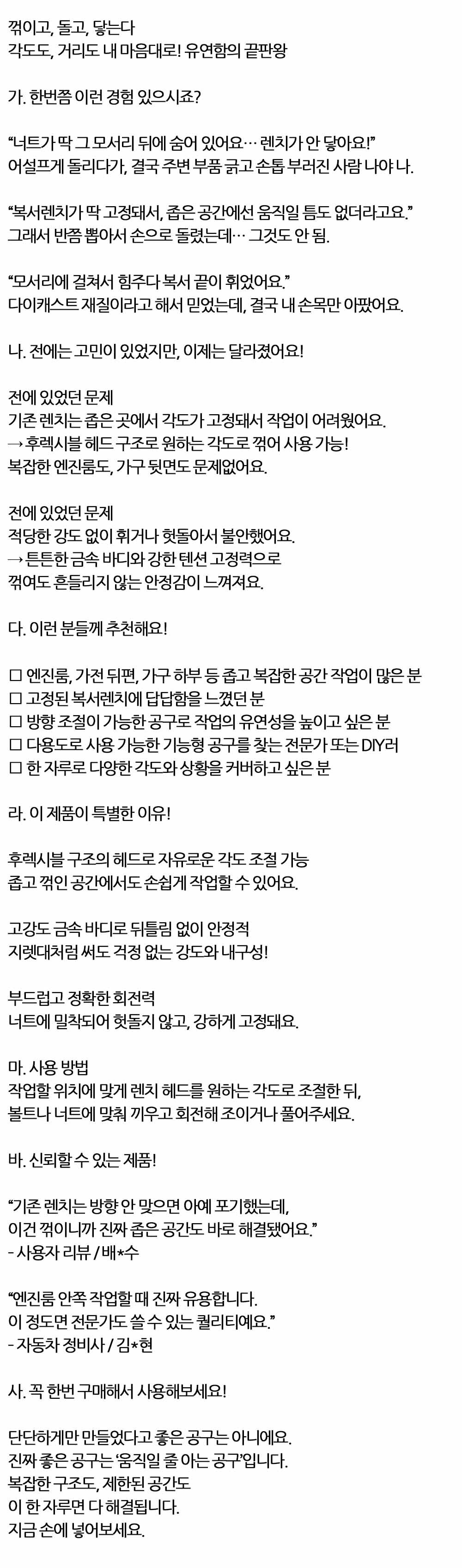 각도 거리 원하는 대로 꺾어서 사용 복서렌치 17-19mm