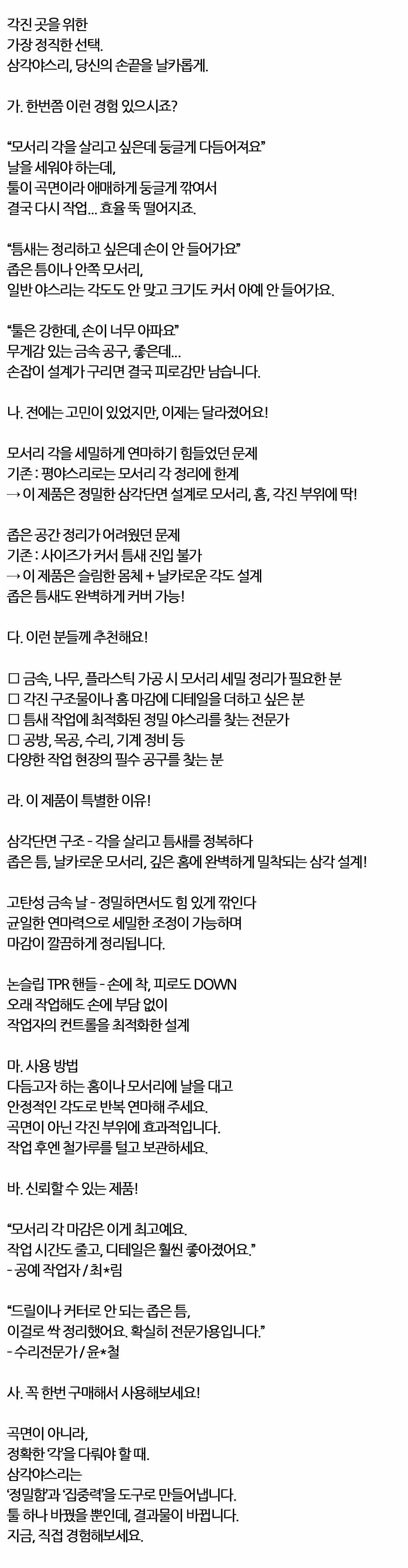 각을 살리고 싶은데 둥글게 다듬어져요 삼각 야스리