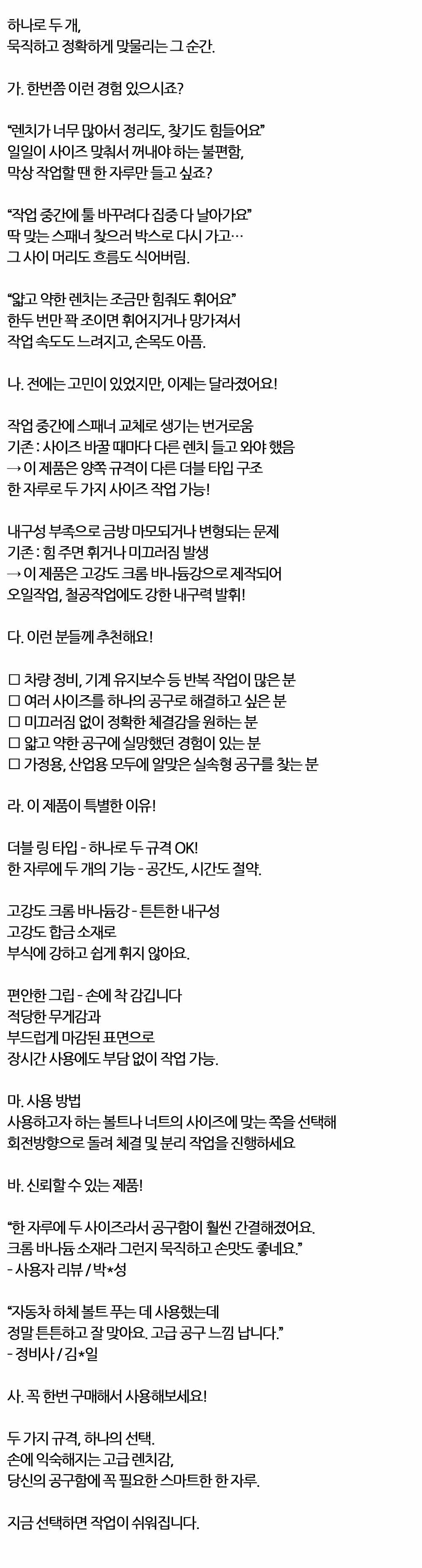 정확하게 맞물리는 양쪽규격다른 2in1 스패너 20-22mm