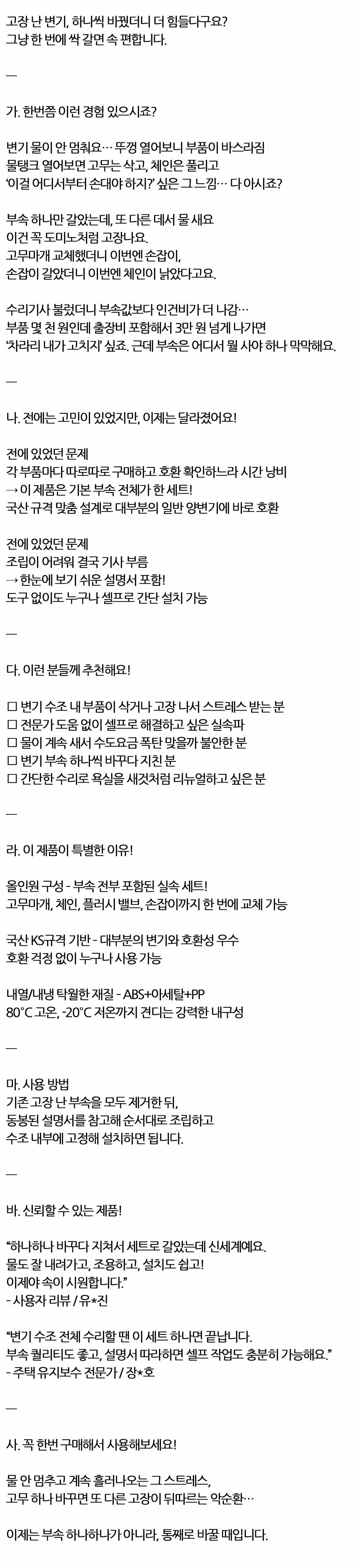 양변기를 통째로 수리할 수 있는 올인원 일반부속세트