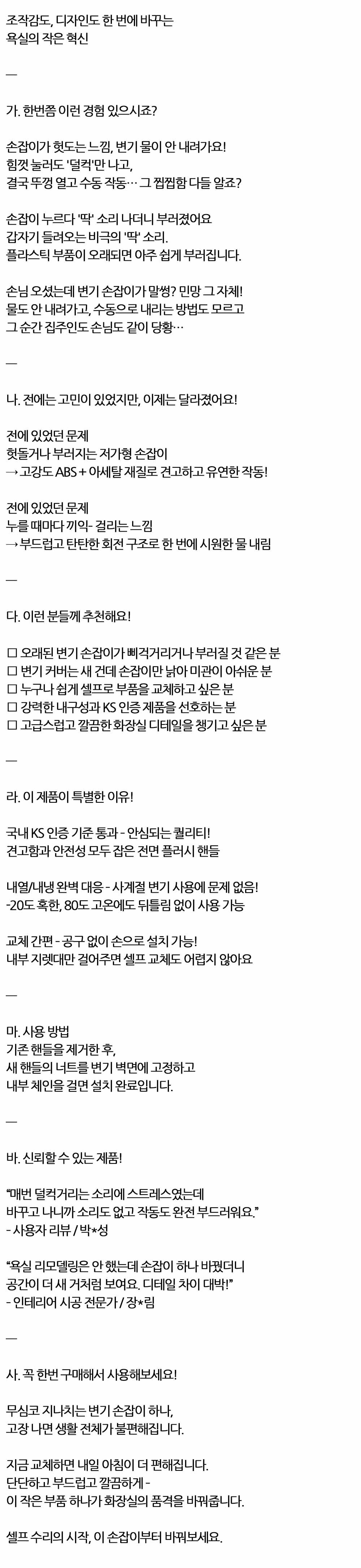 헛도는 느낌 물이 안 내려가요 양변기 전면내림핸들
