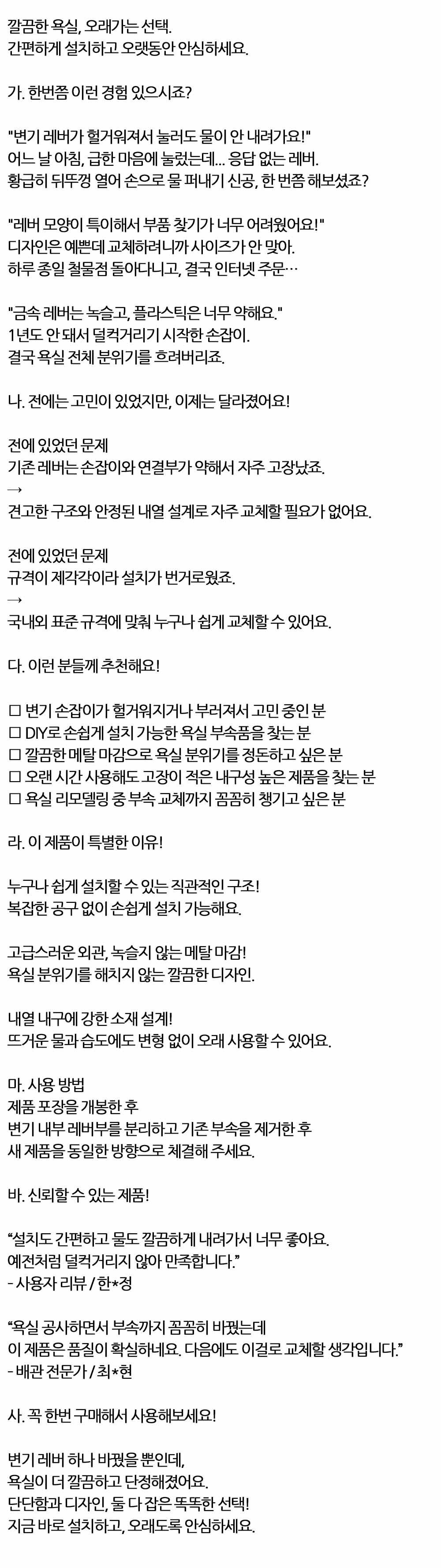 설치하고 오랫동안 안심하세요 양변기 측면내림핸들