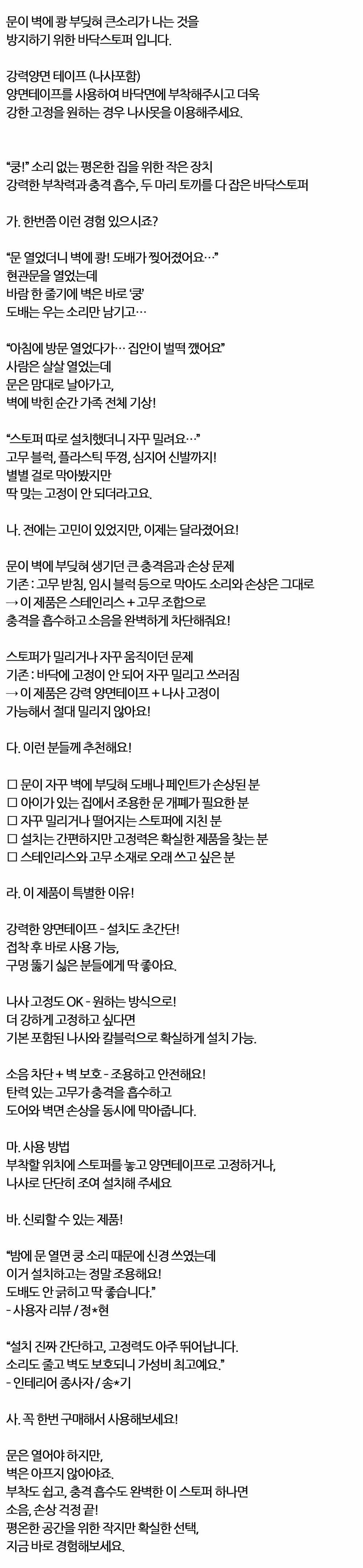 문이 벽에 부딪혀 생기던 큰 충격음 손상 바닥스토퍼