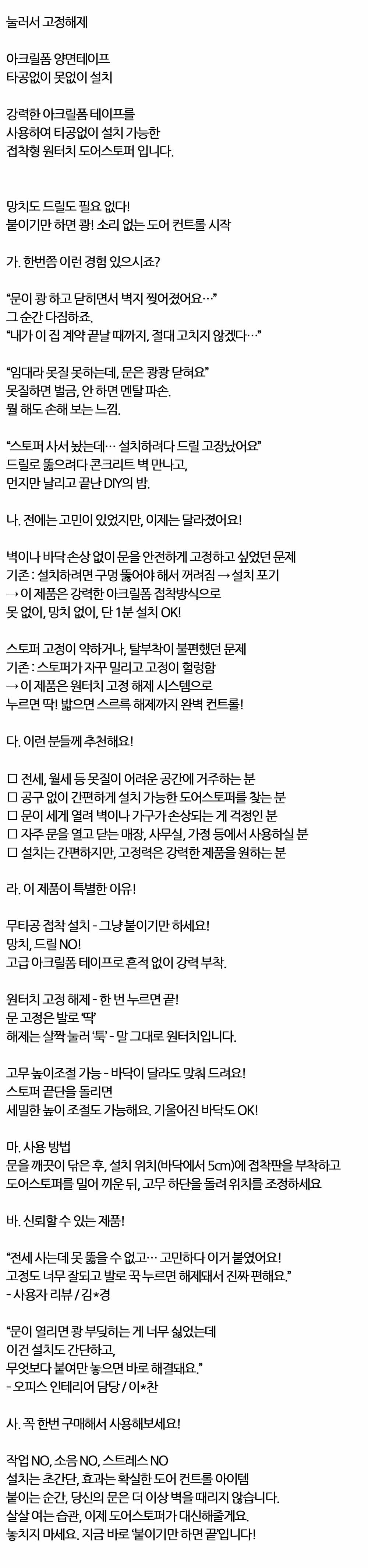 자주 문을 열고 닫는 매장 사무실 무타공 도어스토퍼