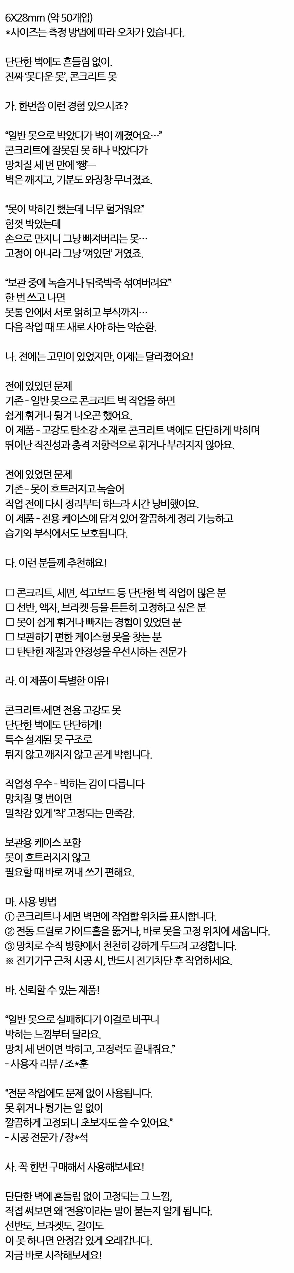 튀지않고 깨지지 않고 곧게 박힙니다 콘크리트못 28mm
