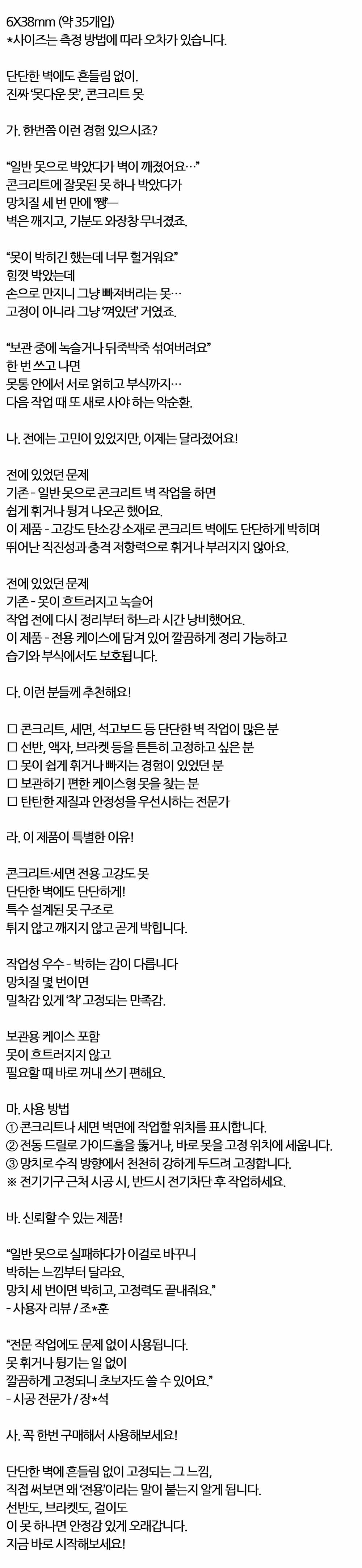 튀지않고 깨지지 않고 곧게 박힙니다 콘크리트못 38mm