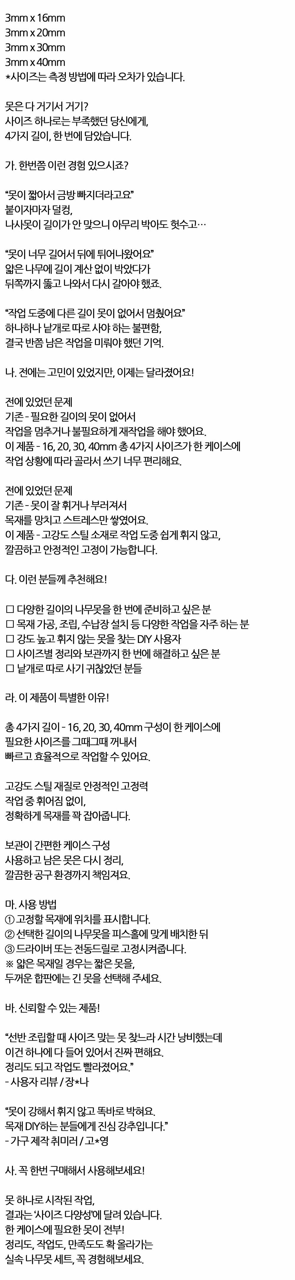 4가지 길이 한 케이스에 담았습니다 나무못 4종세트