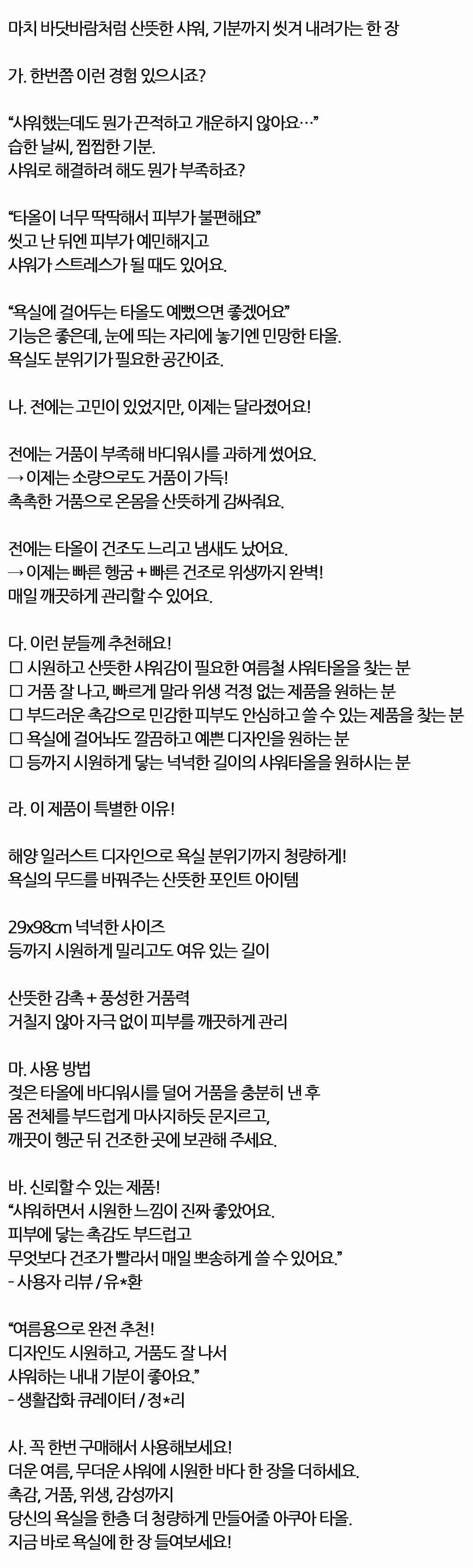 바닷바람처럼 기분까지 씻겨 내려가는 샤워타올 10입