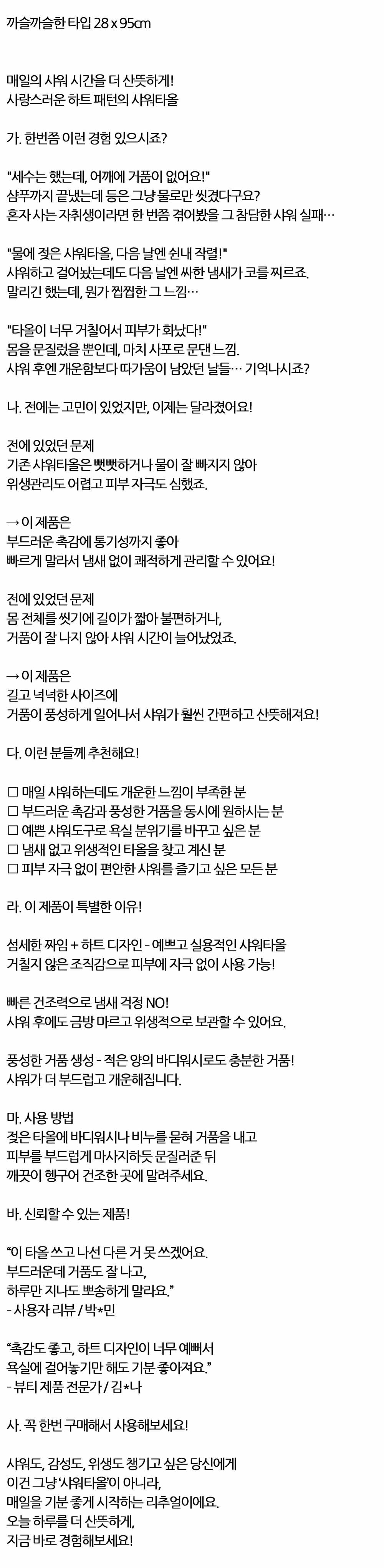 사랑스러운 하트 패턴의 까슬한 타입 샤워타올 10입