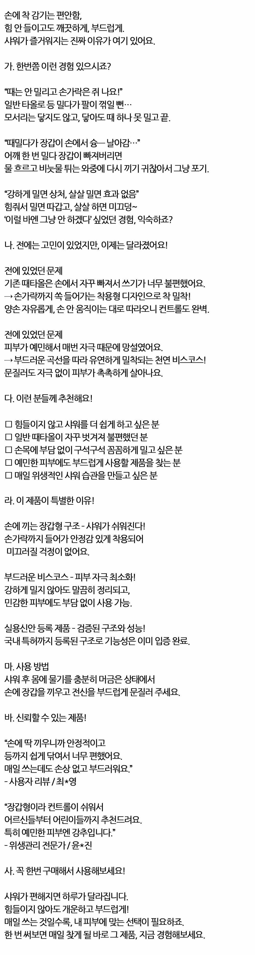 때는 안 밀리고 손가락 쥐 나요 목욕장갑 옐로우 10입