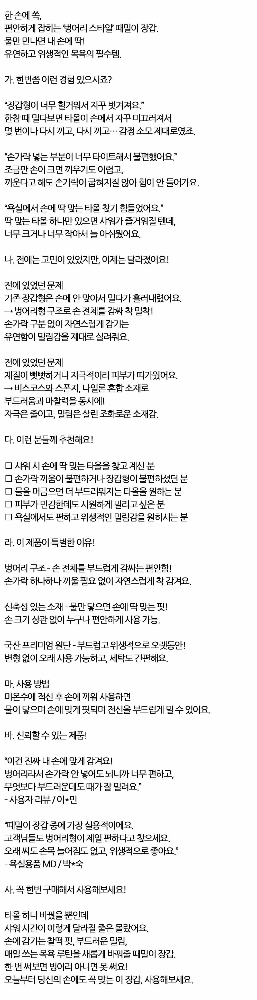 벙어리형 구조로 손 전체를 착 밀착 때밀이장갑 5입