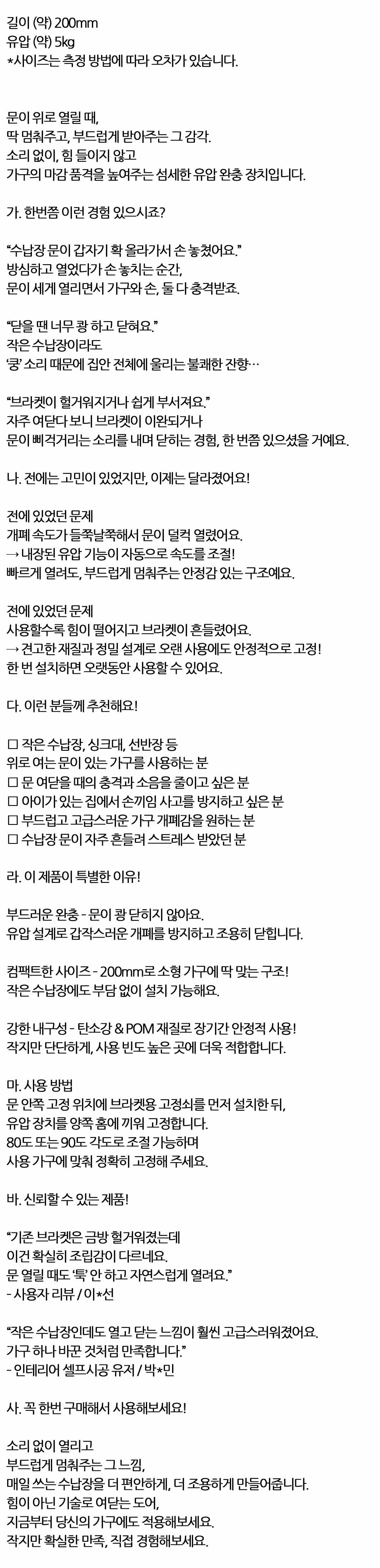수납장 문이 세게 열려요 싱크대선반 유압브라켓 소