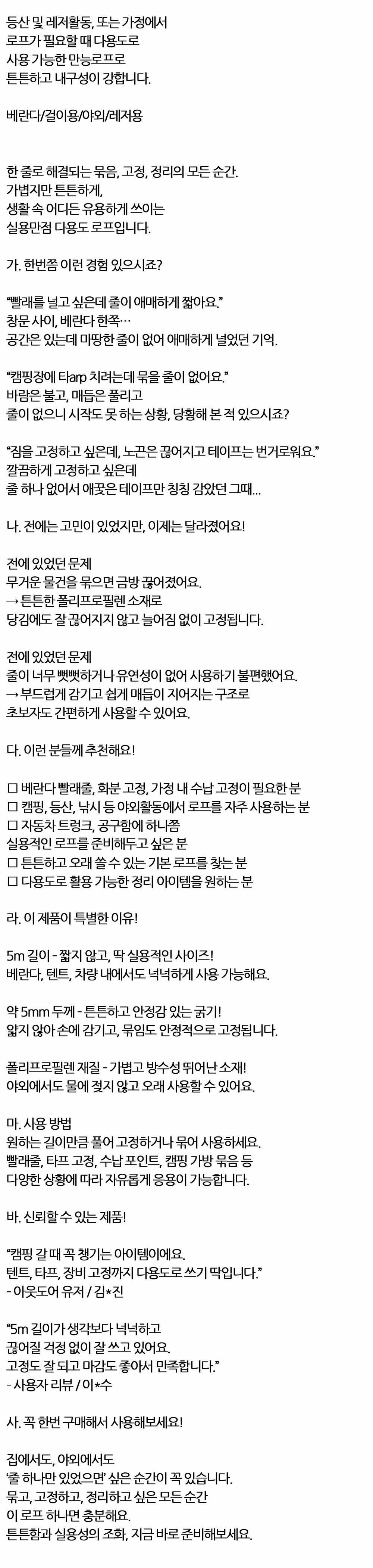 캠핑 등산 낚시 야외활동 가볍지만 튼튼 만능로프 5M