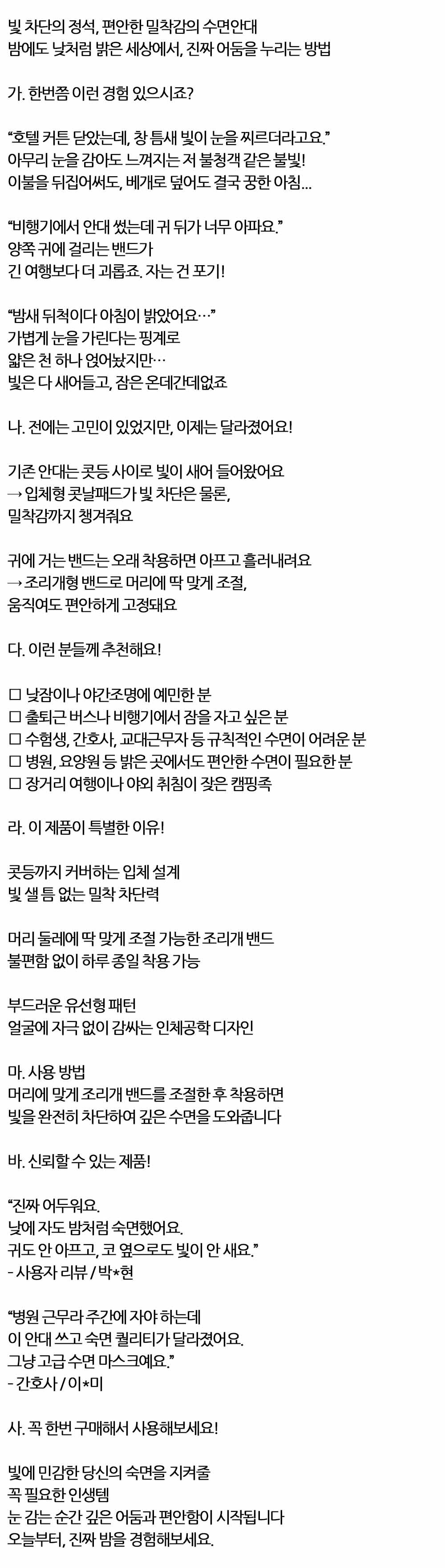 귀도 안아프고 낮에 자도 밤처럼 숙면했어요 수면안대
