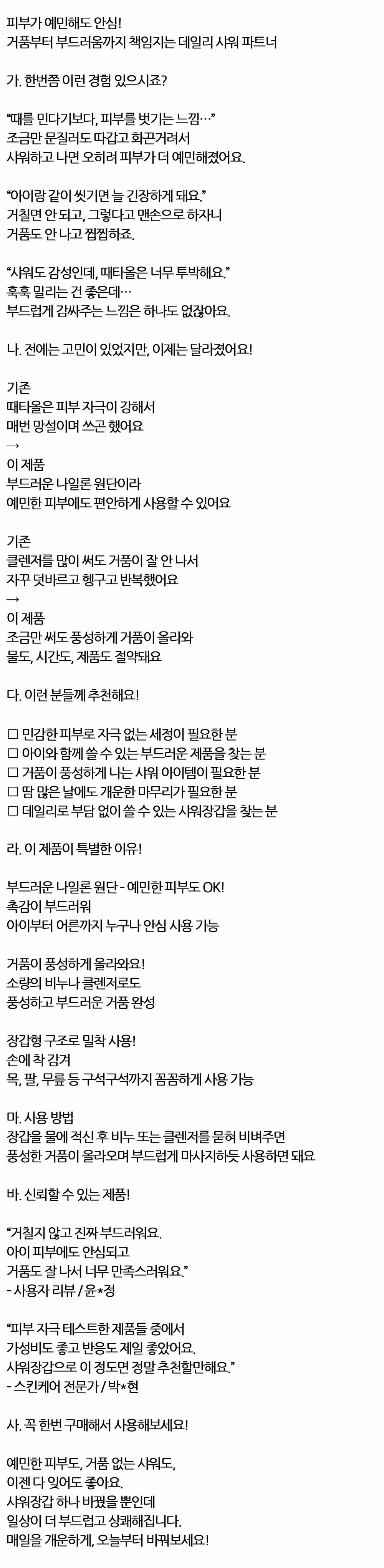 예민한 피부 안심 구석 꼼꼼하게 때밀이장갑 2P 10입