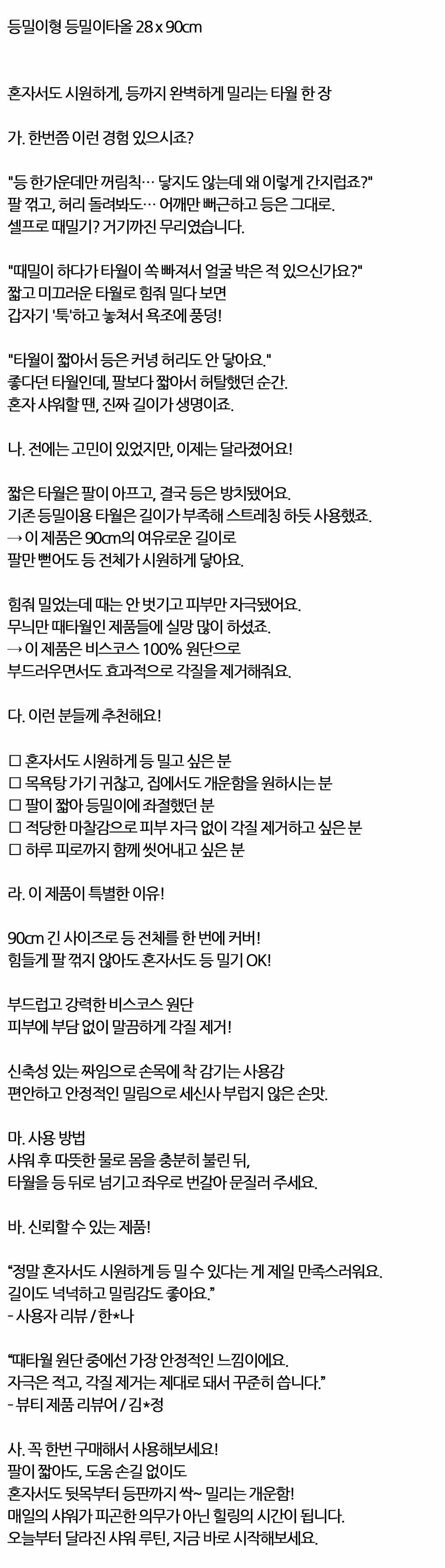 뒷목부터 등판까지 시원하게 등밀이때타올 1매 10봉