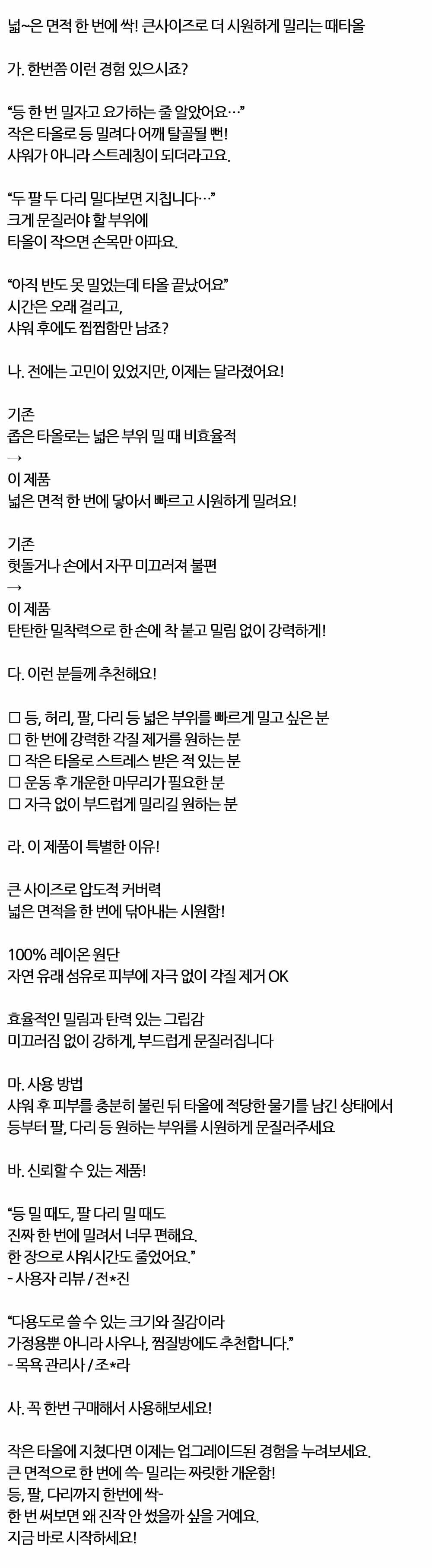 큰사이즈로 더 시원하게 쓱 밀리는 개운함 때타올 2P