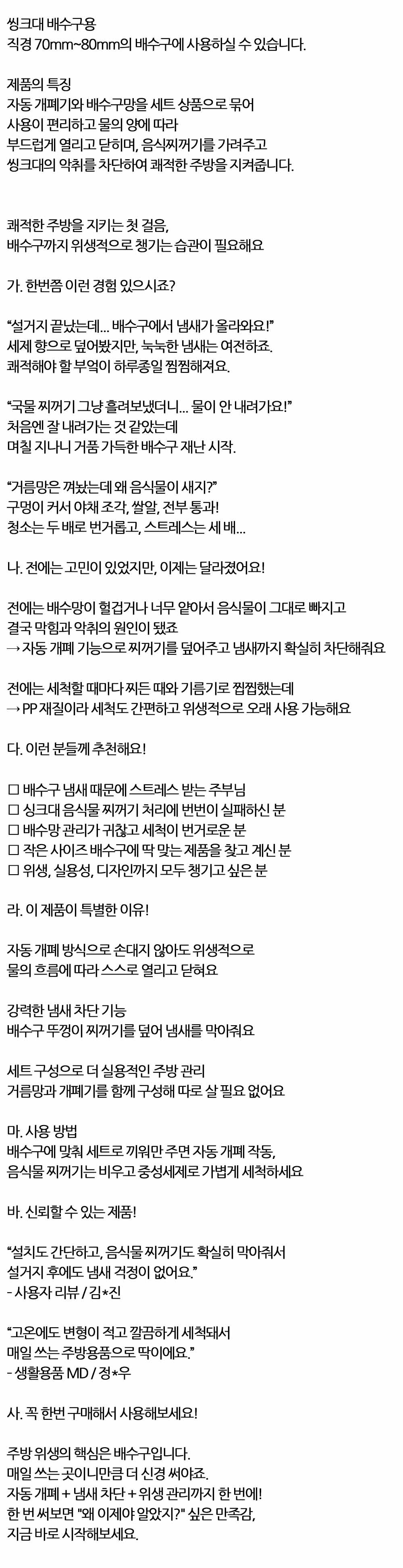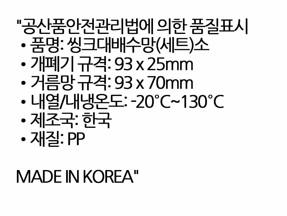 주방 위생 핵심은 배수구입니다 싱크대 배수망세트 소