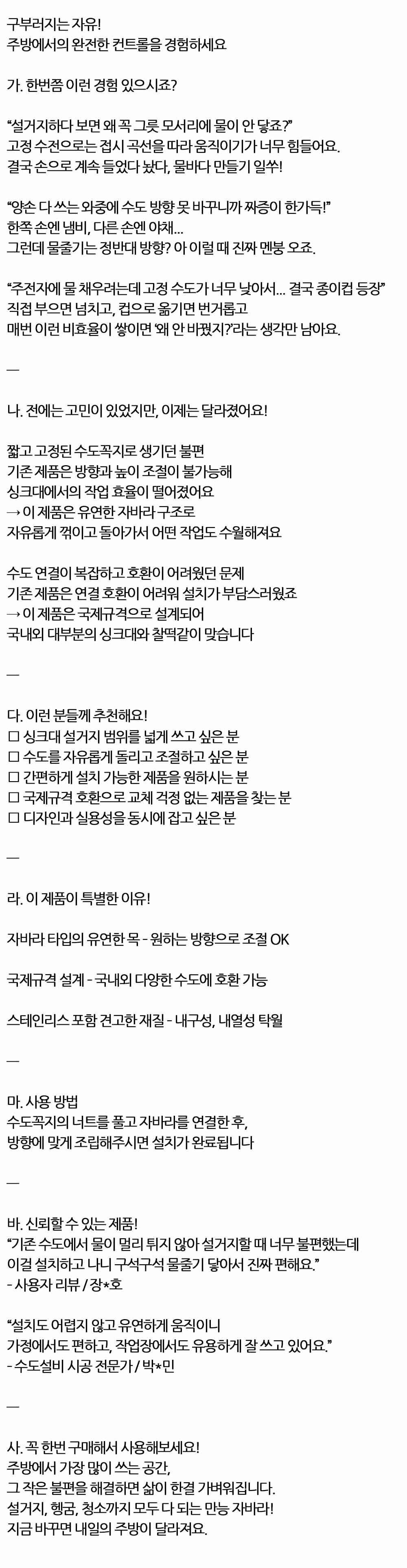 원하는방향 각도로 자유롭게 물줄기조절 자바라형 I형