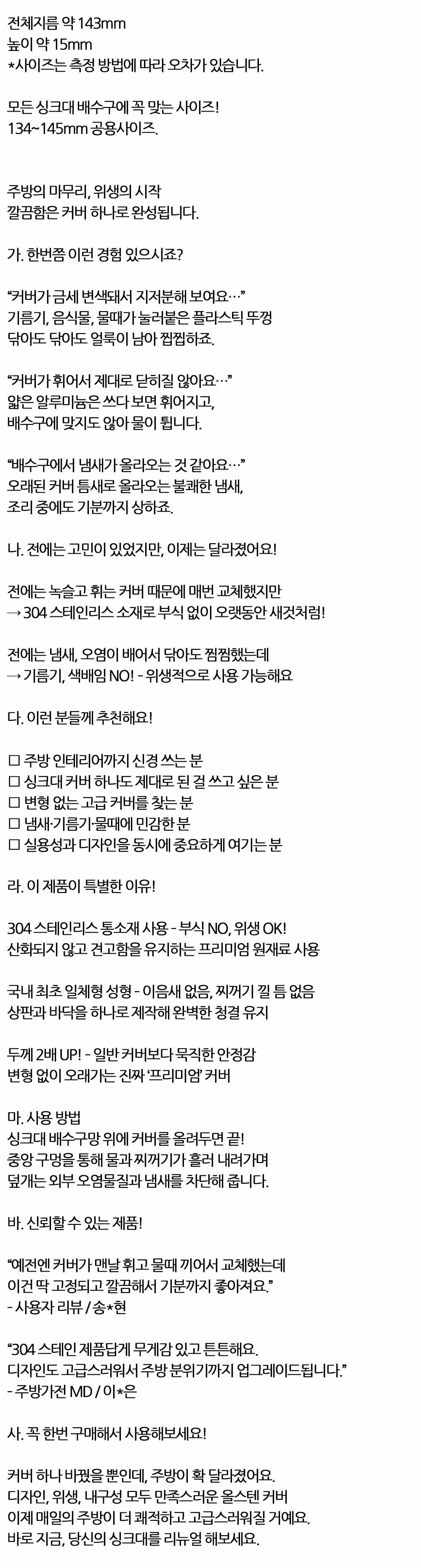 올스텐 소재 부식없이 오랫동안 새것처럼 싱크대 커버
