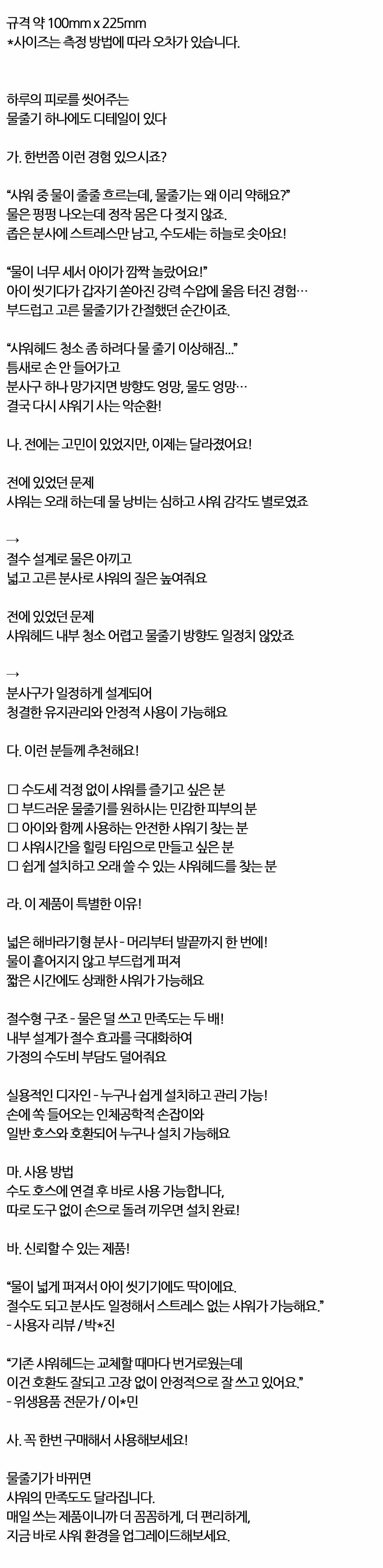 넓고 고른분사로 샤워의 질 높여줘요 절수형 샤워헤드