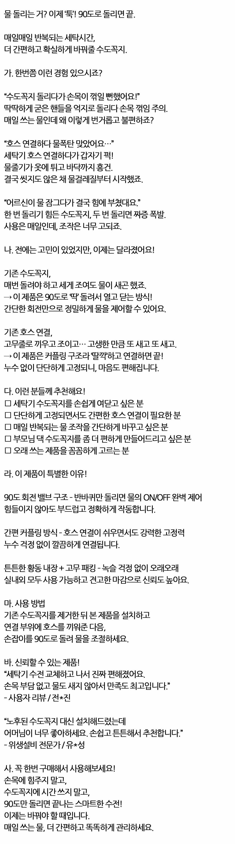 90도로 돌려서 열고 닫는 수전 커플링 가로 수도꼭지