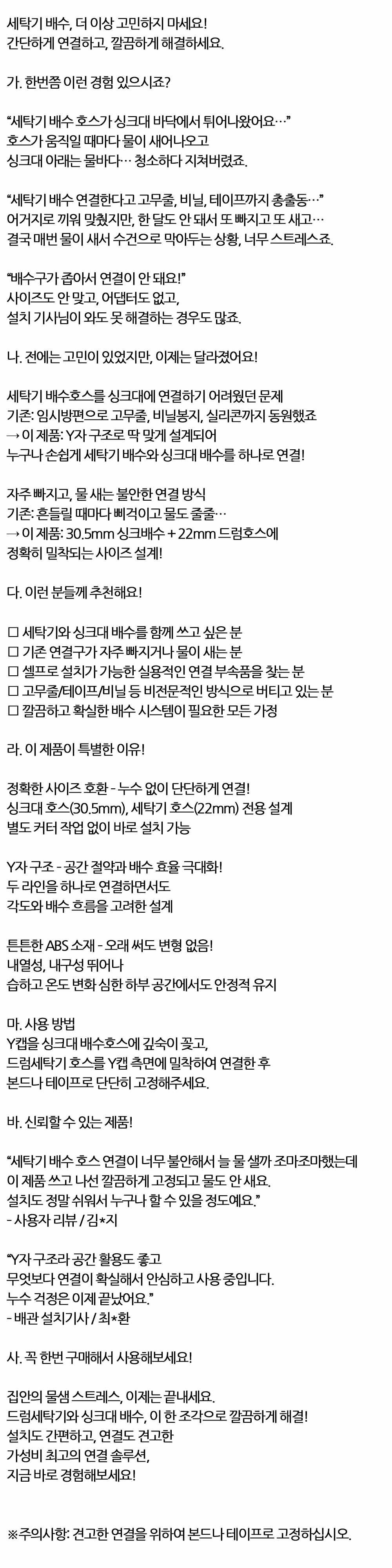 세탁기 배수 더 이상 고민하지 마세요 호스 Y 연결캡