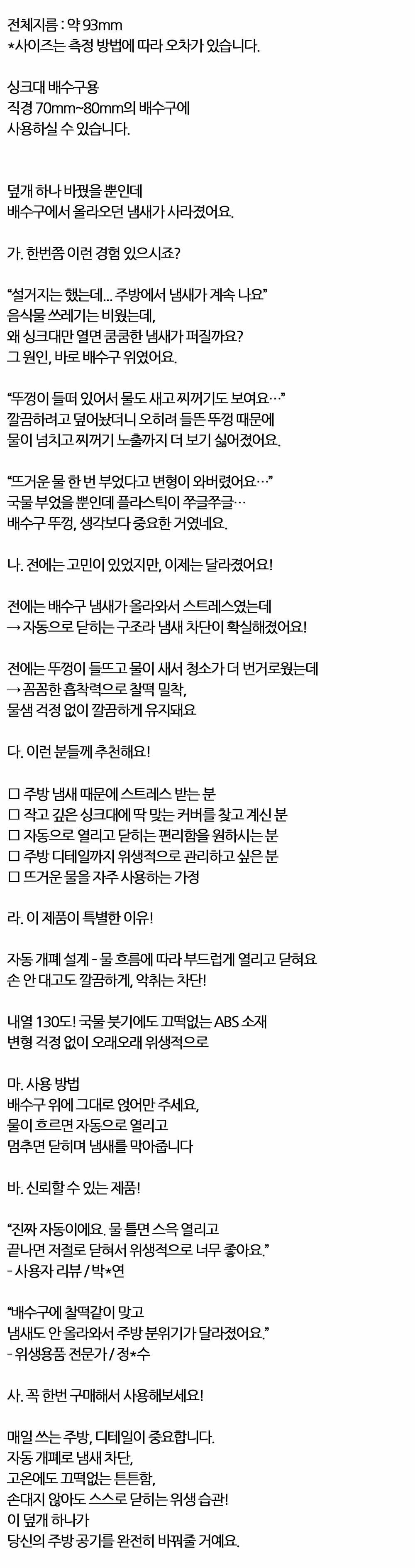 배수구에서 올라오던 냄새 사라졌어요 배수구 덮개 소