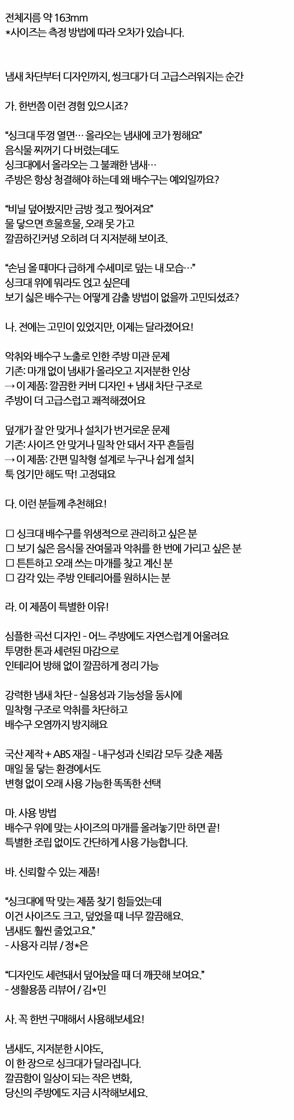 주방싱크대에서 올라오는 그 불쾌한 냄새 배수구 덮개