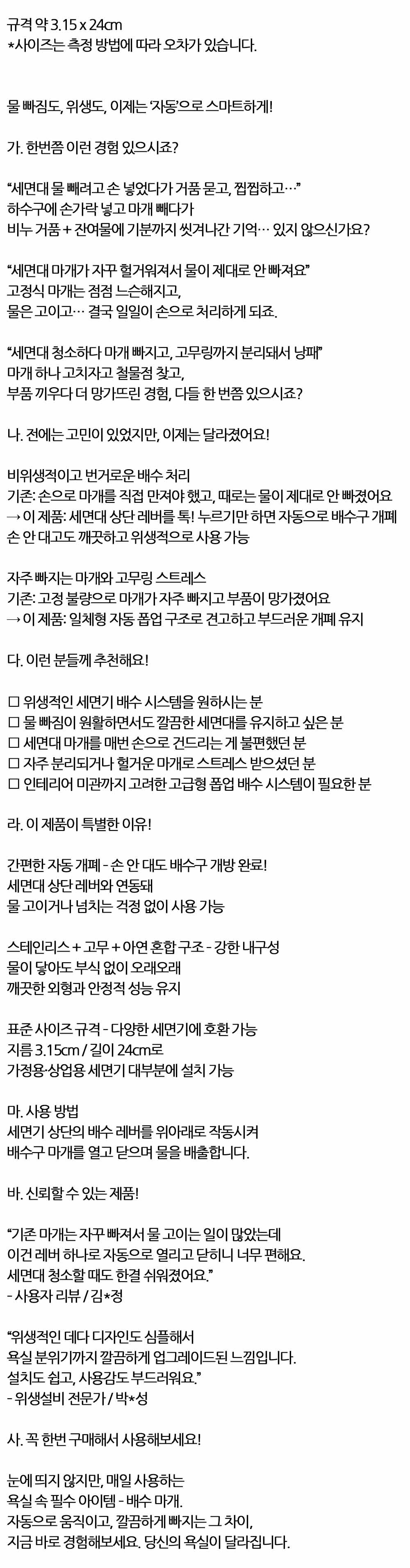 세면기 물빠짐을 조절할 수 있는 설비 부속 자동폽업