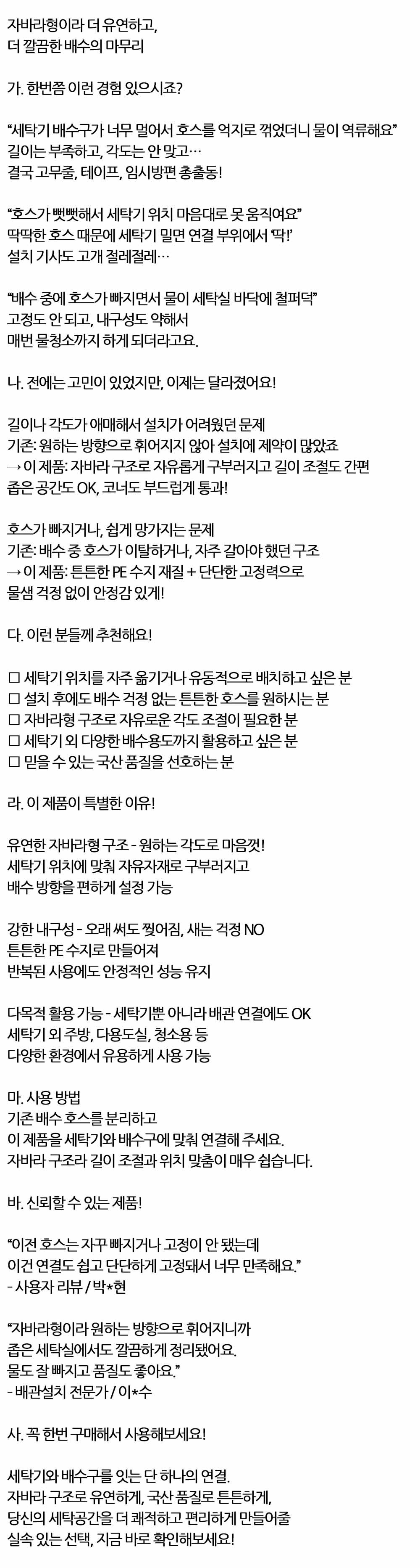 물도 잘 빠지고 품질도 좋아요 세탁기 배수호스 소