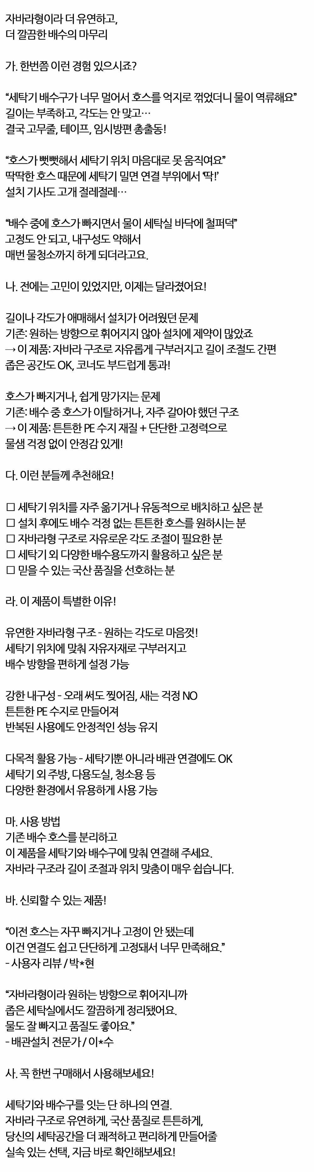 물도 잘 빠지고 품질도 좋아요 세탁기 배수호스 대