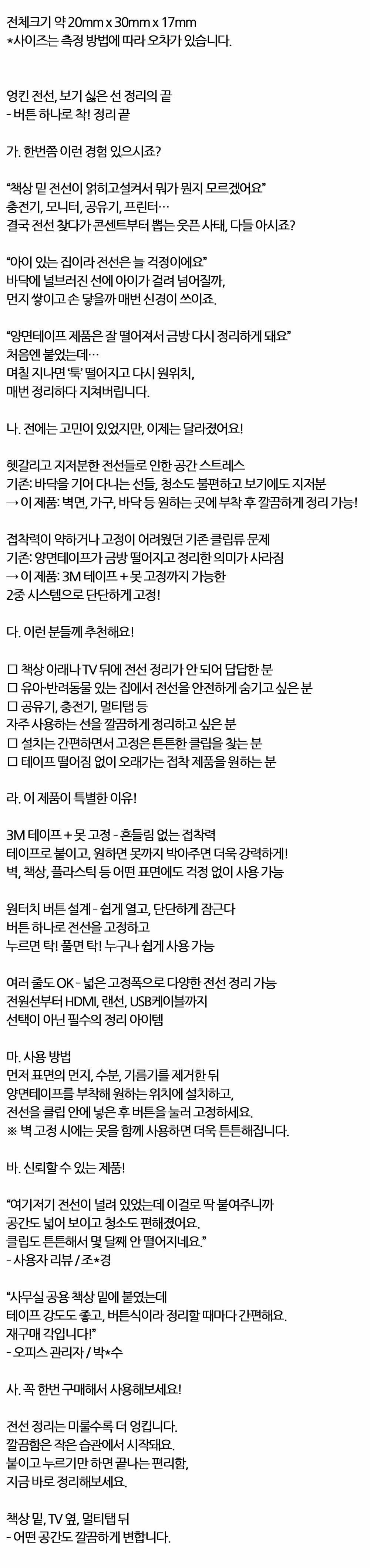 엉킨전선 보기싫은 선정리의 끝 원터치클립 8P 화이트