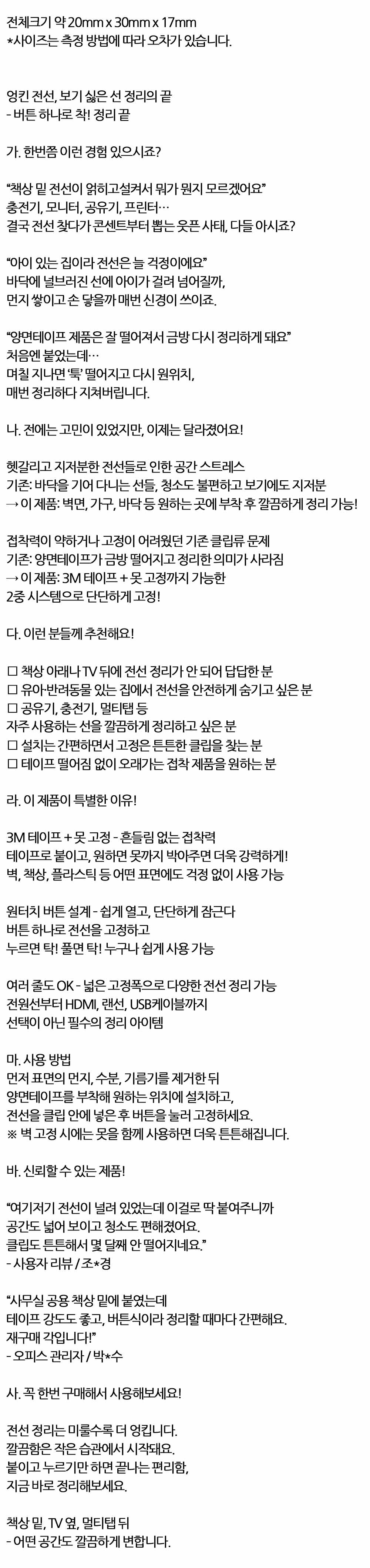 엉킨전선 보기 싫은 선정리의 끝 원터치클립 8P 블랙