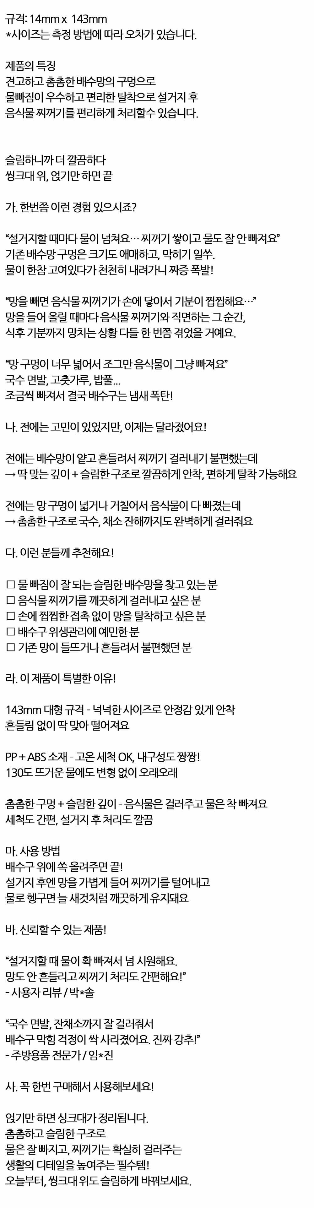 음식물은 걸러주고 물은 착 빠져요 배수구 씽크거름망