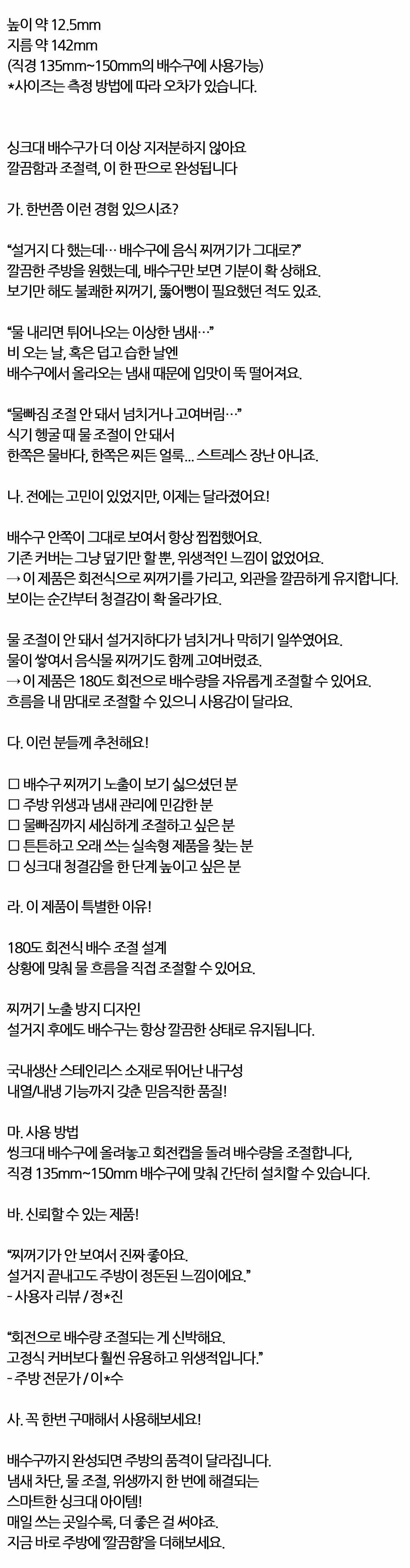 배수량을 자유롭게 조절할 수 있어요 싱크대 스텐마개