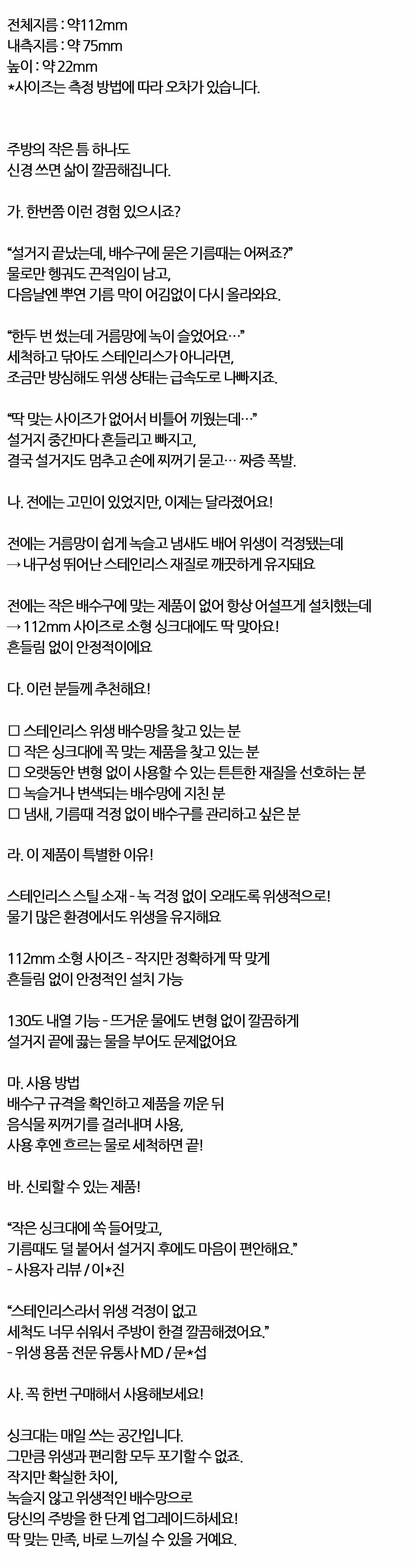 싱크대는 매일 쓰는 공간입니다 싱크스텐배수망 112mm