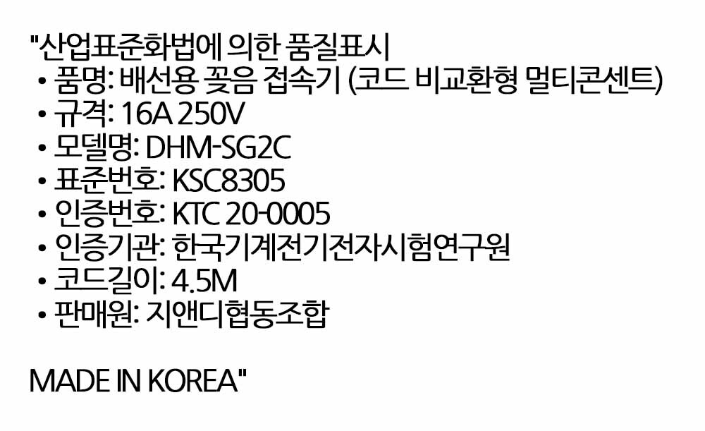 내열 난연 안전소재 개별스위치 절전 멀티탭 2구 4.5M