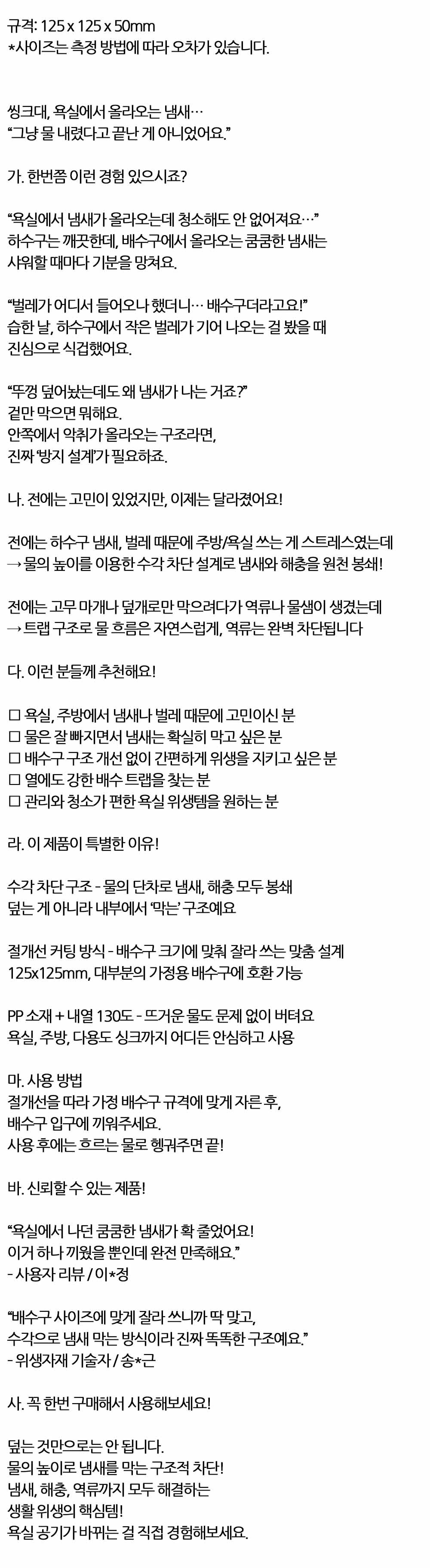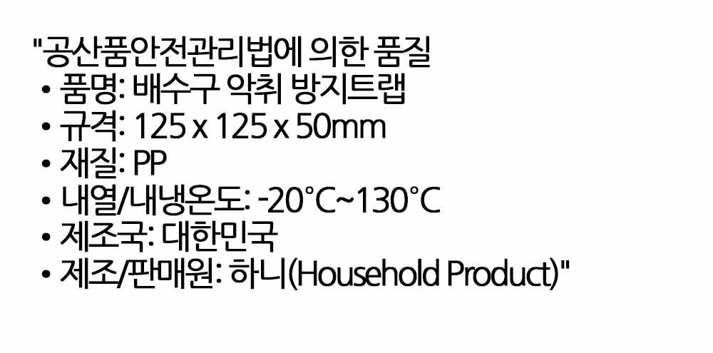 물의 높이로 냄새를 막는 악취방지 배수구트랩 화이트