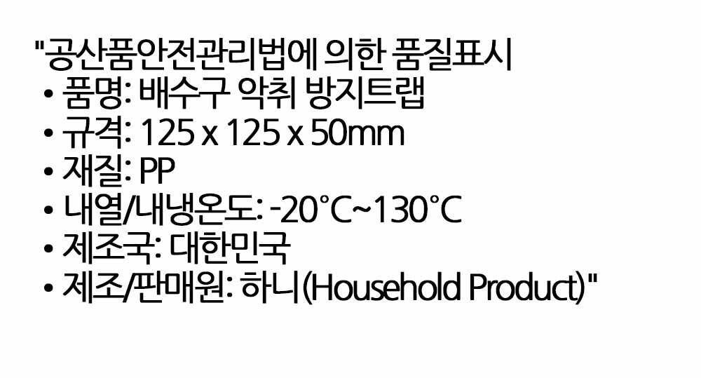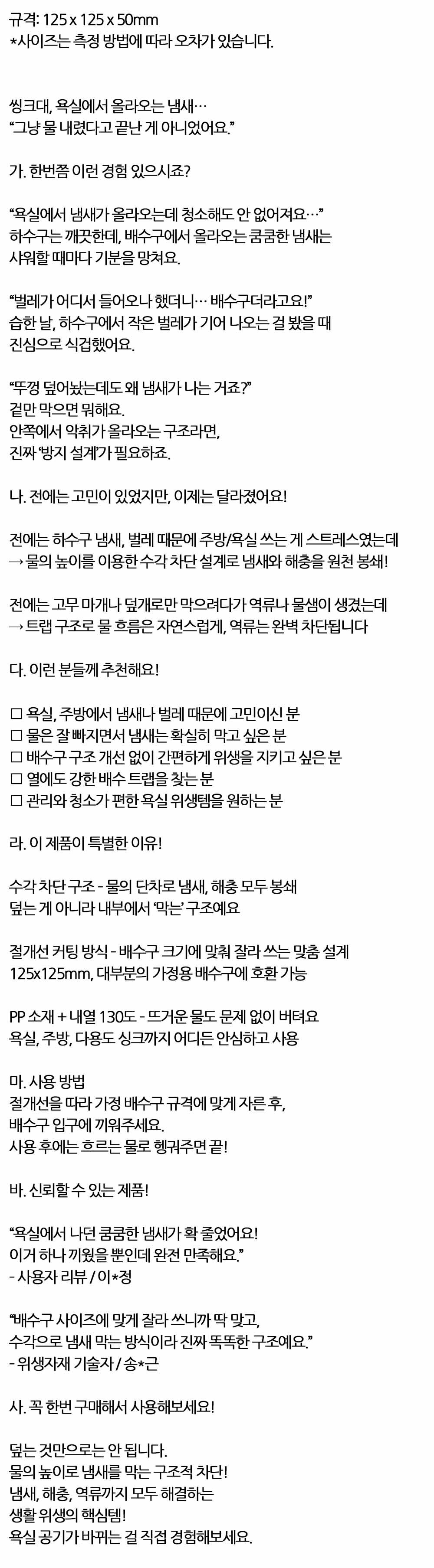 물의 높이로 냄새를 막는 악취방지 배수구트랩 그레이