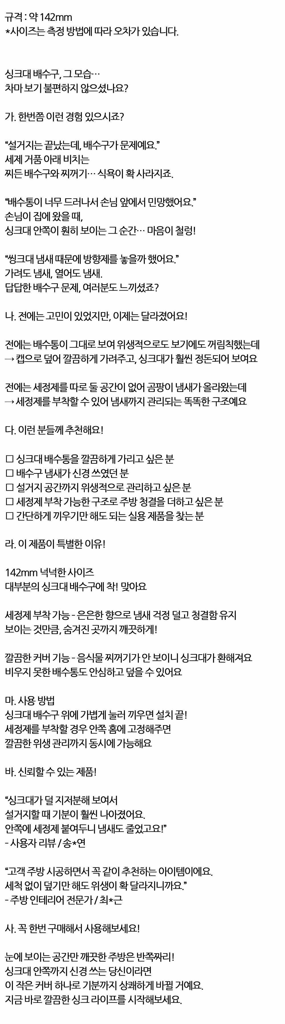 음식물 찌꺼기 안 보이니 환해져요 싱크대 배수구덮개