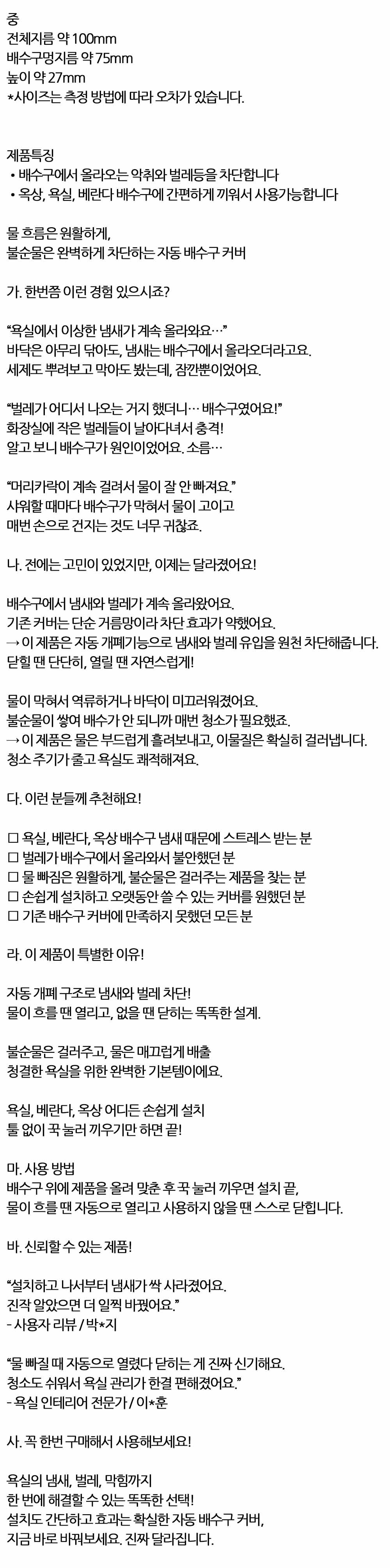 자동개폐기능 냄새와 벌레 유입차단 배수구 덮개 75mm