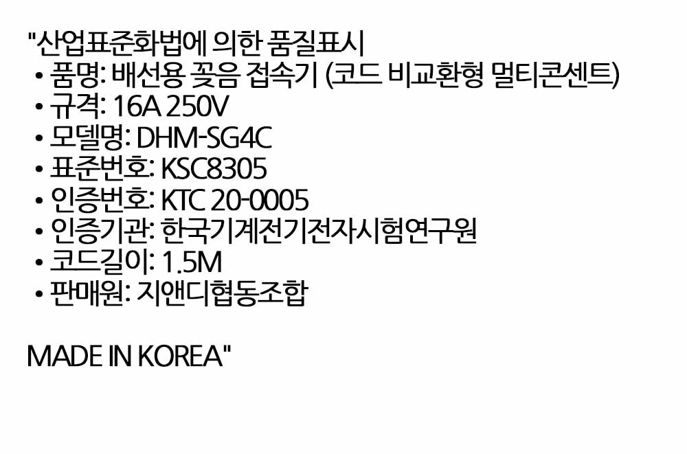 내열 난연 안전소재 개별스위치 절전 멀티탭 4구 1.5M