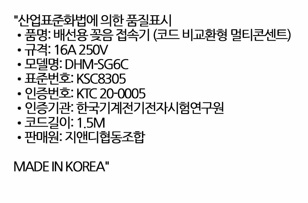 내열 난연 안전소재 개별스위치 절전 멀티탭 6구 1.5M
