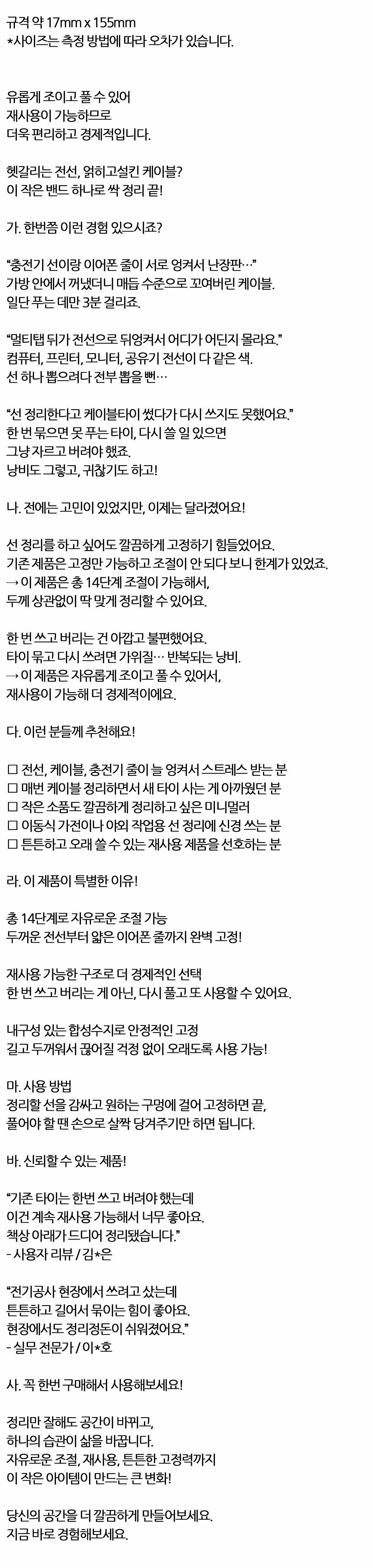 얽히고설킨 전선 케이블정리 재사용 밴드 10개 화이트
