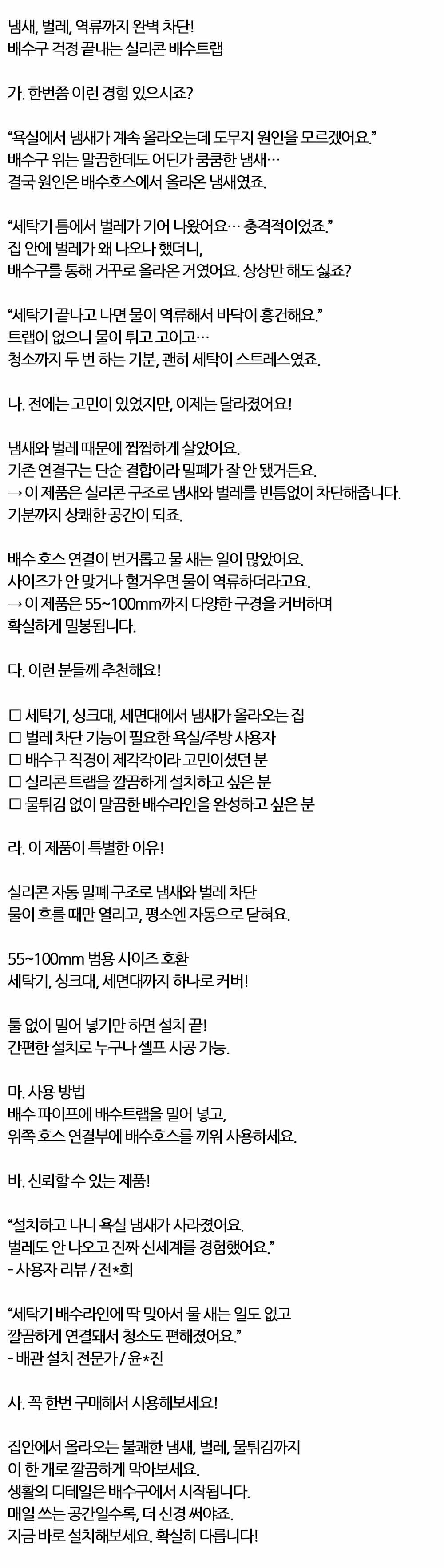 냄새 벌레 역류 배수구 걱정 끝내는 실리콘 배수트랩