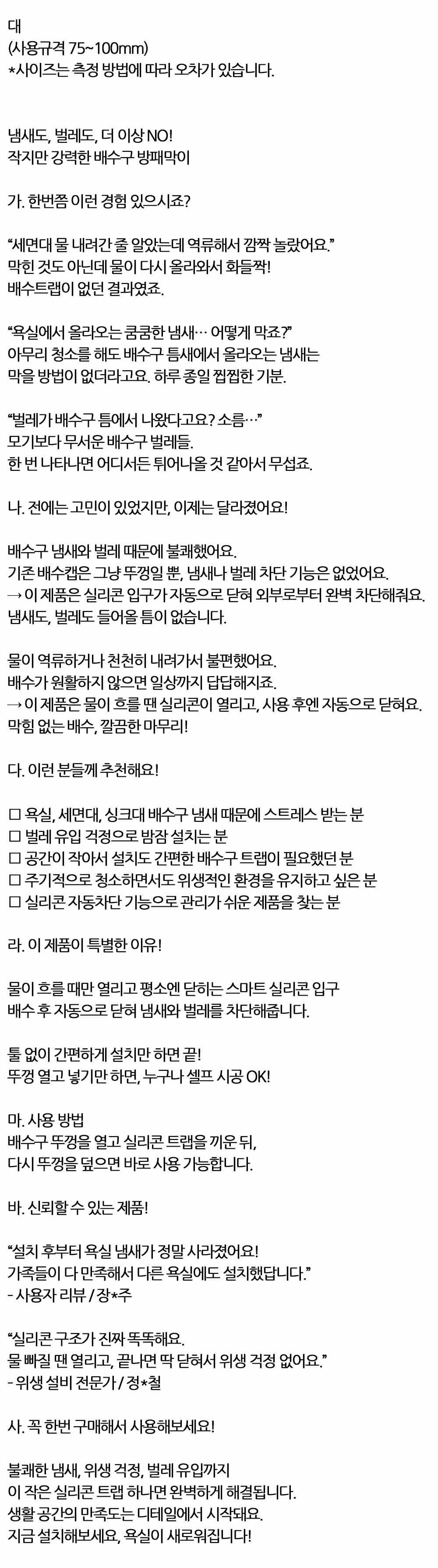 불쾌한 냄새 벌레유입 방패막이 실리콘 배수구트랩 대