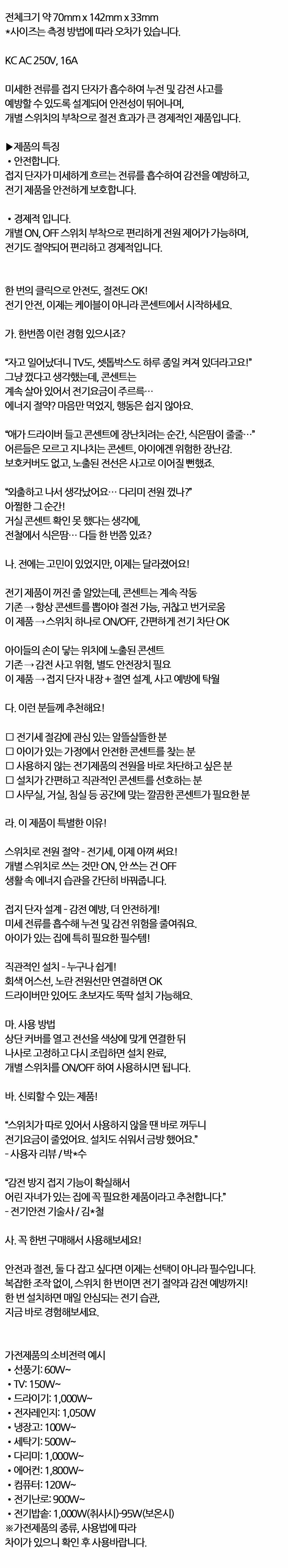 개별스위치로 전기세 이제 아껴 써요 절전 2구 콘센트