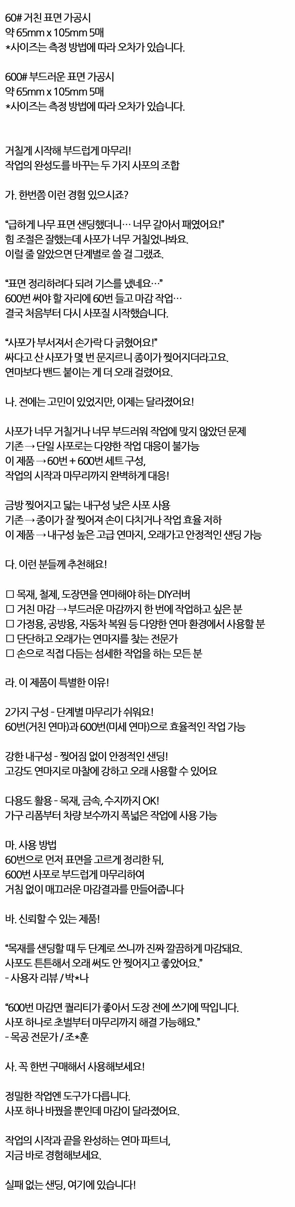작업의 완성도 바꾸는 두 가지 사포의 조합 사포 10매